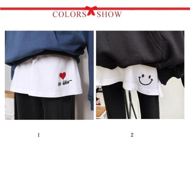 刺繍 プリント 付け裾 つけ裾 レイヤード インナー レイヤードカットソー 裾フレア 裾フリル ウエストゴム ミニスカート スリットレイヤード