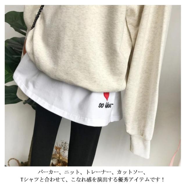 | いつものコーデにプラスするだけ!手軽にレイヤードスタイルが叶う付け裾 パーカー、ニット、トレーナー、カットソー、Tシャツと合わせて、こなれ感を演出する優秀アイテムです! | |