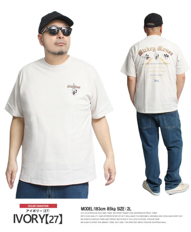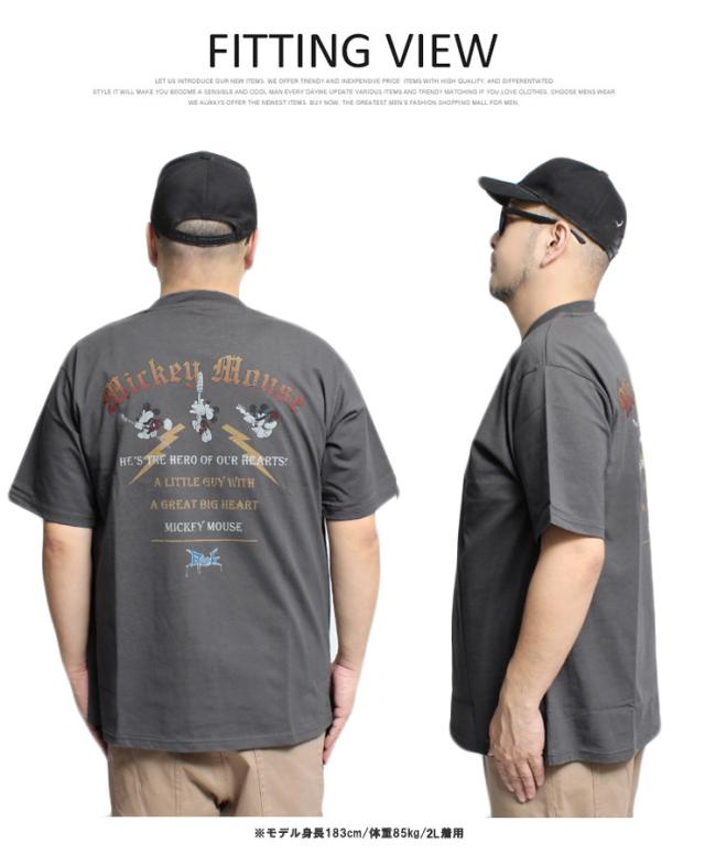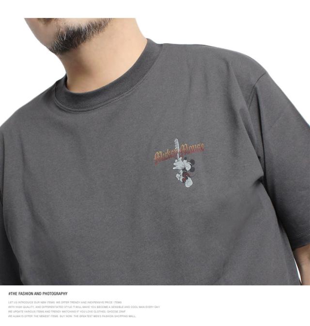 【メール便で送料無料】Disney ディズニー Mickey Mouse(ミッキーマウス) 半袖 Tシャツ メンズ 大きいサイズ ピグメント加工 プリント クルーネック カットソー キャラクター アニメ グッズ かわいい トップス 古着風 プリントTシャツ ヴィンテージ ワークマン プラス