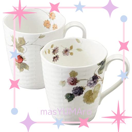 NARUMI(ナルミ) ペア マグカップ ルーシーガーデン 370CC ベリー柄 2柄セット かわいい おしゃれ レリーフ 大きめ 電子レンジ温め 食洗機対応 ギフト箱入り 96011-21903P