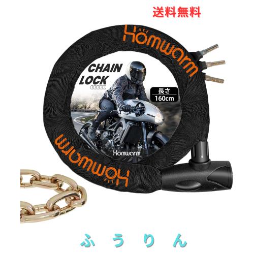 Homwarm バイクロック チェーンロック 頑丈 盗難防止 鍵3本付き 極太 長さ1600mm チェーンパイプ直径8mm 多用途 自転車 バイク ワイヤー