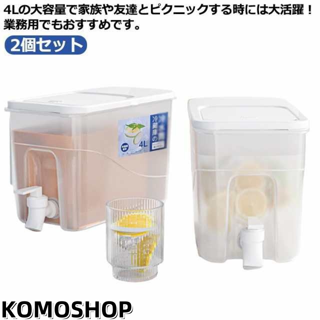 2個セット 冷水筒 麦茶ポット 4L 大容量 蛇口付き ピッチャー 横置き 耐熱 耐冷 冷蔵庫 広口 洗いやすい お茶 水 麦茶 ポット 熱湯 水差し 麦茶入れ タテヨコ 縦横 冷水ポット プラスチック ドリンクサーバー ウォーターサーバー