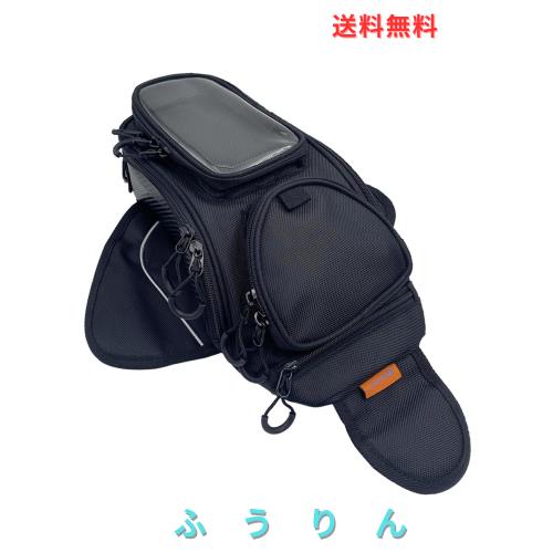 REYGEAK バイク用タンクバッグ、防水、超磁性強化マグネット付き、ブラック 1680D PVC ガソリンタンクバッグ、大きな窓付き携帯電話バッ