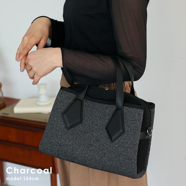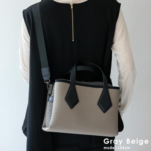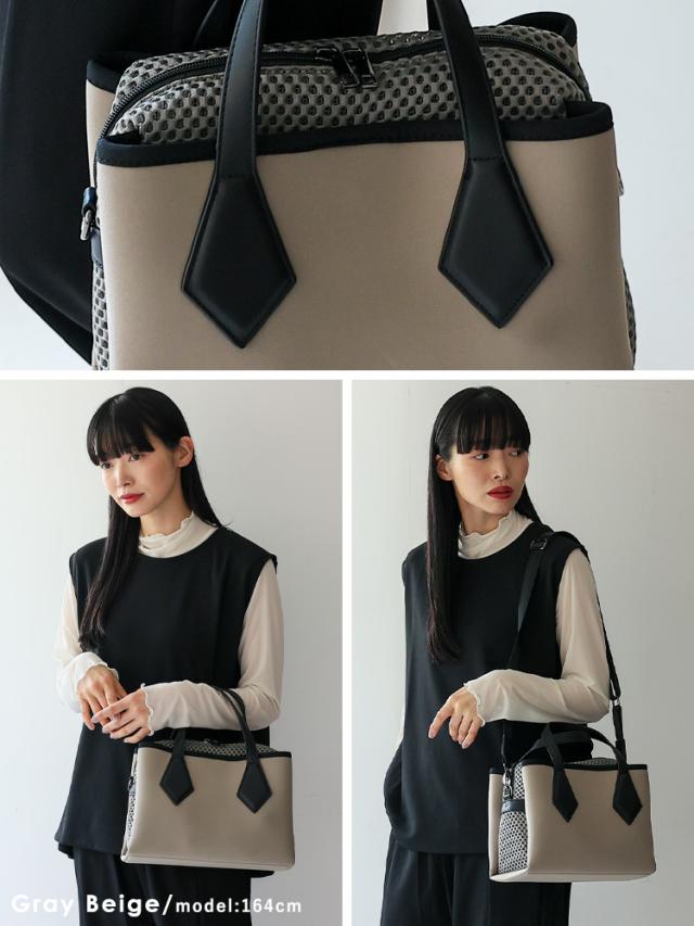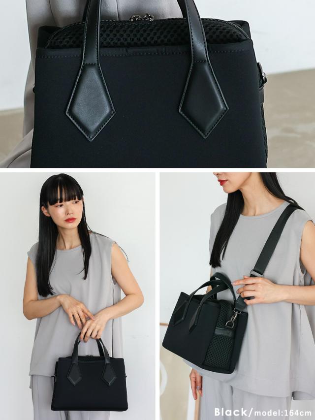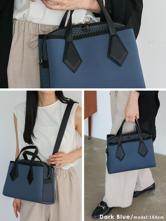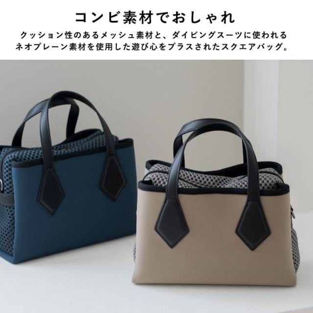 ショルダーバッグ レディース 斜めがけ 大人 軽量 ネオプレーン メッシュ生地 3スペース 3収納 バッグ スクエア 横長バッグ 肩掛け 斜め掛け 2way コンビ ダイバー素材 ネオプレン スクエアショルダーバッグ おしゃれ 個性的 ubb-sp-0478 【aroco/アロコ】 春夏 夏バッグ