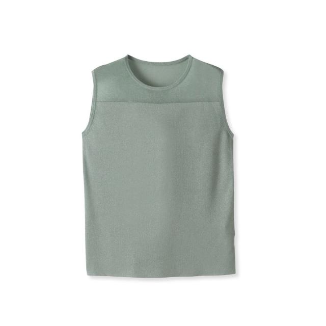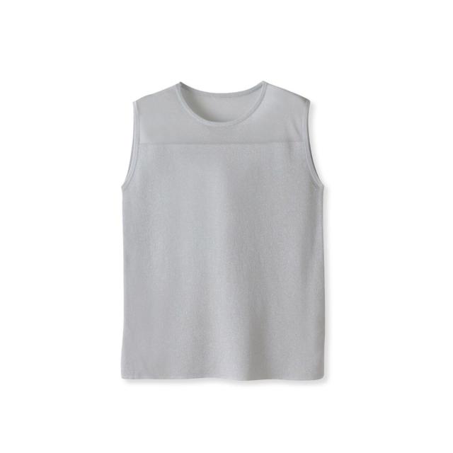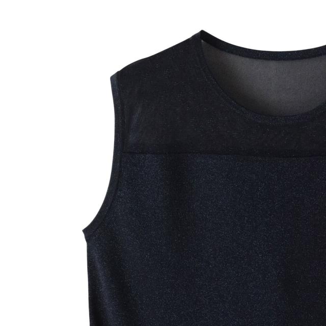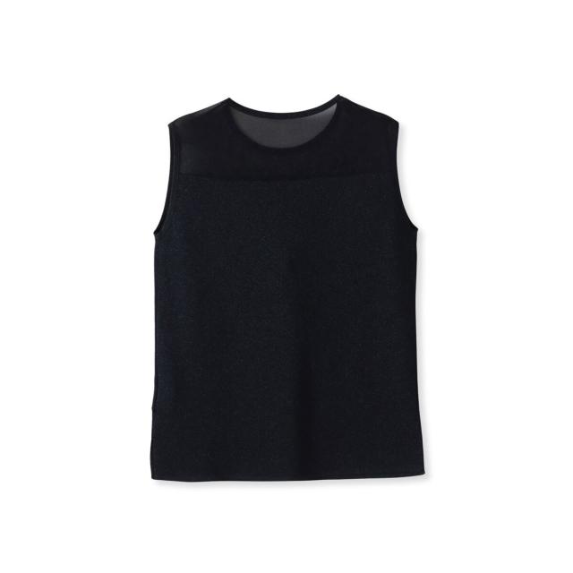胸元から肩にかけてはシアー感のあるすっきりとしたサイズ感で、同素材のカーディガンとのアンサンブルスタイルもおすすめです。