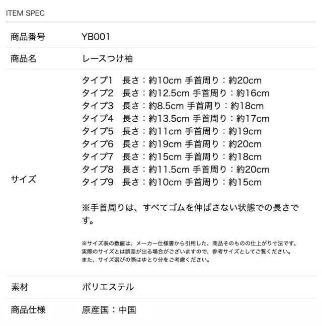 ※手首周りは、すべてゴムを伸ばさない状態での長さです。