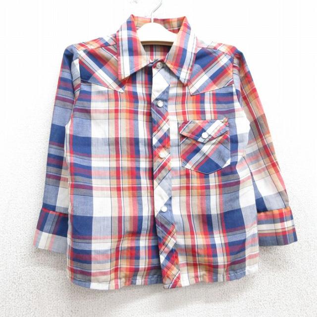 古着 半袖 シャツ キッズ ボーイズ 子ども服 80年代 80s コットン 水色他 チェック 中古 古着