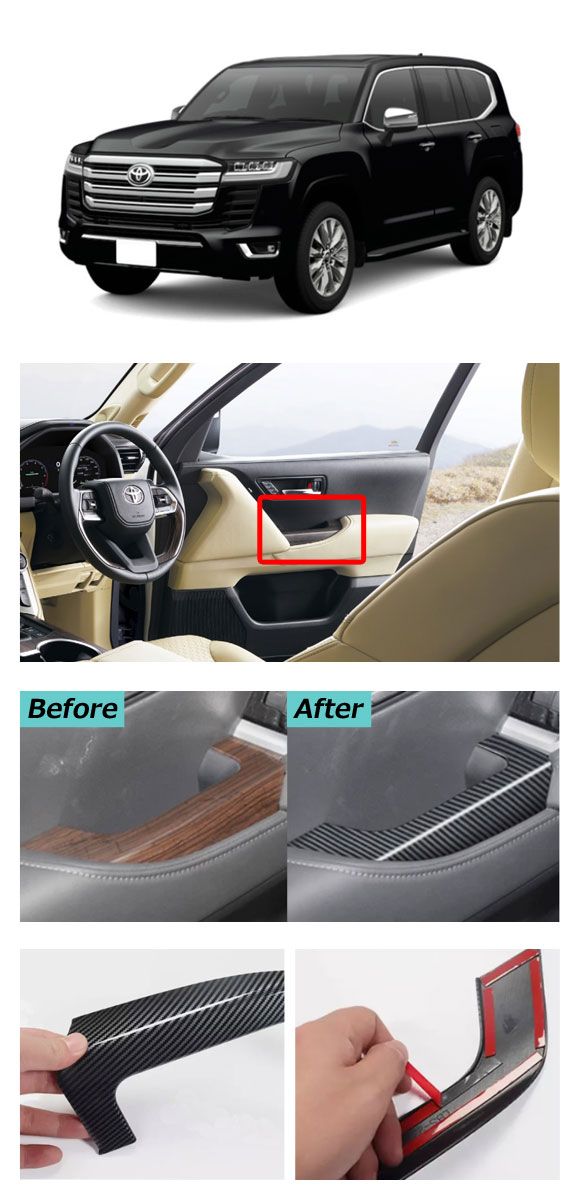 ドアポケットカバー トヨタ ランドクルーザー 300系 2021年08月〜 ブラックカーボン ABS樹脂製 入数:1セット(2個) AP-IT3905-BKC