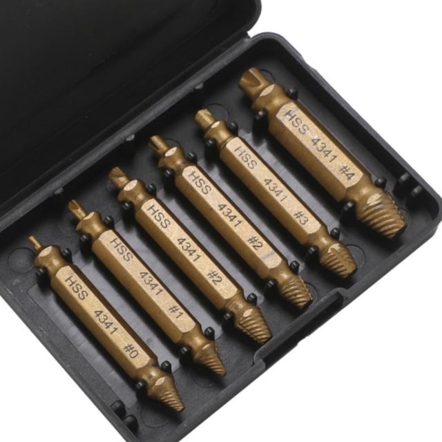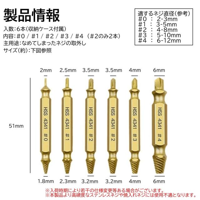 なめたネジはずしビット ドリルビット 6本 セット なめたネジ外し 潰れたネジ外し 収納ケース 工具 HSS高速度鋼タイプ ステンレスネジ ナメたボルト