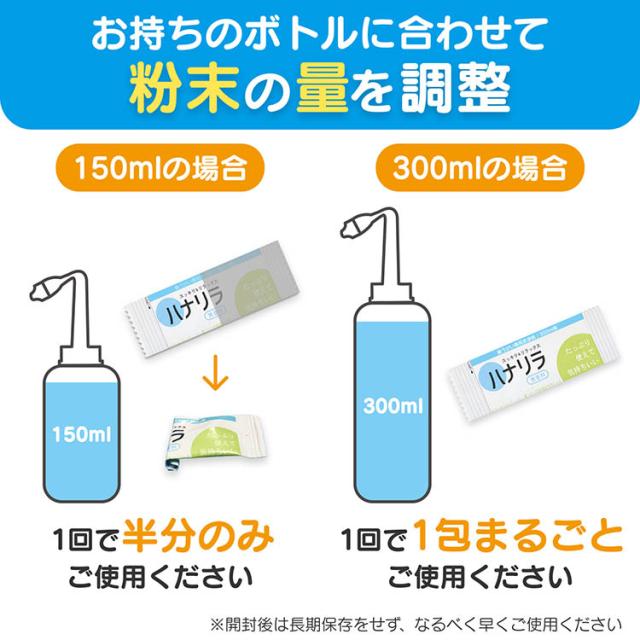 ●1包で大容量300 mLの洗浄液がたっぷり作れ、サッと溶ける顆粒パウダーだからすぐに鼻洗浄ができます。