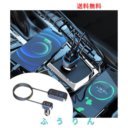 ◆商品名:AUSTYLCO 車用充電器 車載分配器 シガーソケット リアチャージャー 延長充電器(ケーブル付き) 1.5m延長ケーブル 6台同時充電 12V/24V車