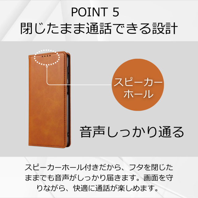 スピーカーホールのおかげでケースを開かずにそのまま通話が可能。手がふさがっているときにも役立ちます。