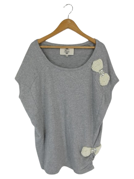 【中古】カオン Kaon カットソー ノースリーブ ビジュー パールモチーフ リボン 無地 サイズ36 グレー QQQ レディース