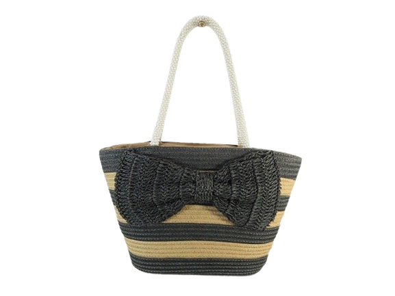 【中古】アナトリエ ANATELIER カゴバッグ トートバッグ バスケット リボン ボーダー ブラウン ブラック レディース