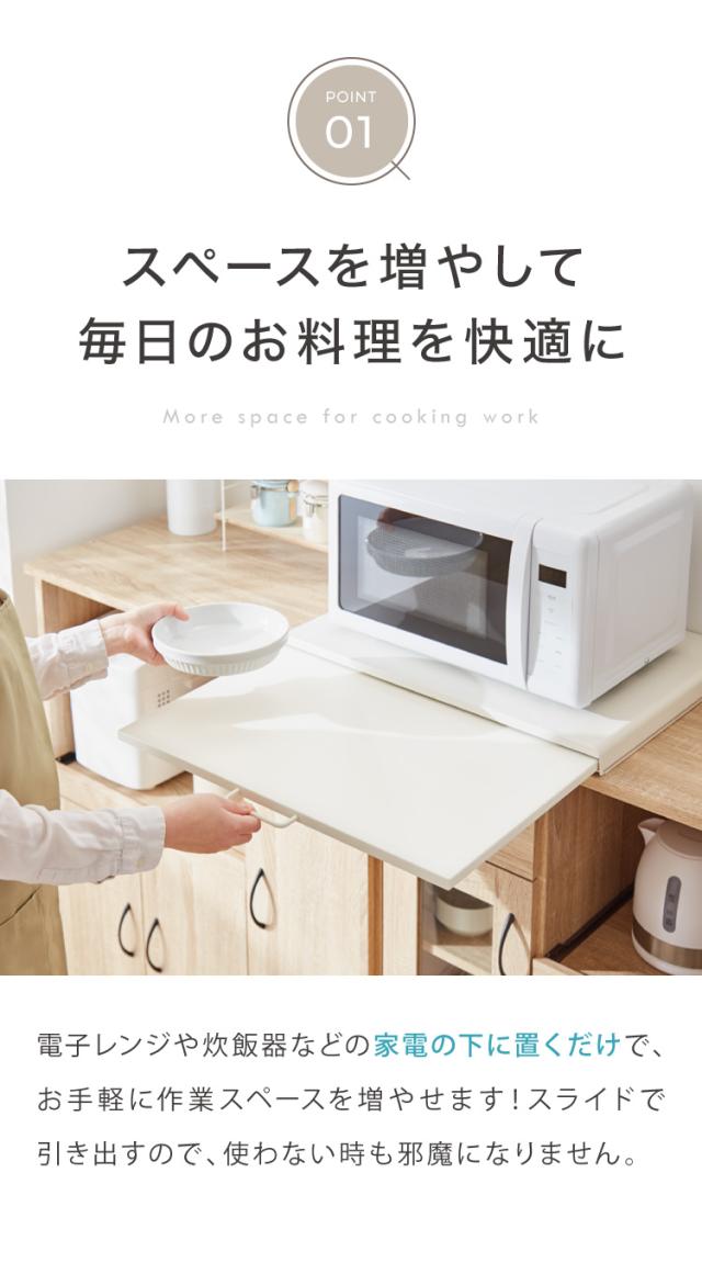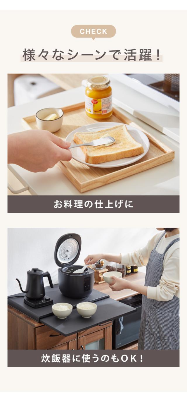 ・狭いスペースのキッチンに、ちょっとした作業台が作れるスライドトレーです。