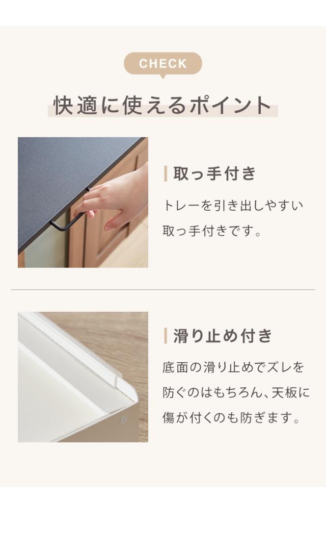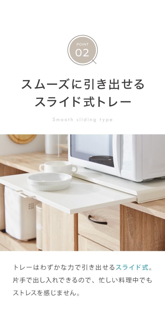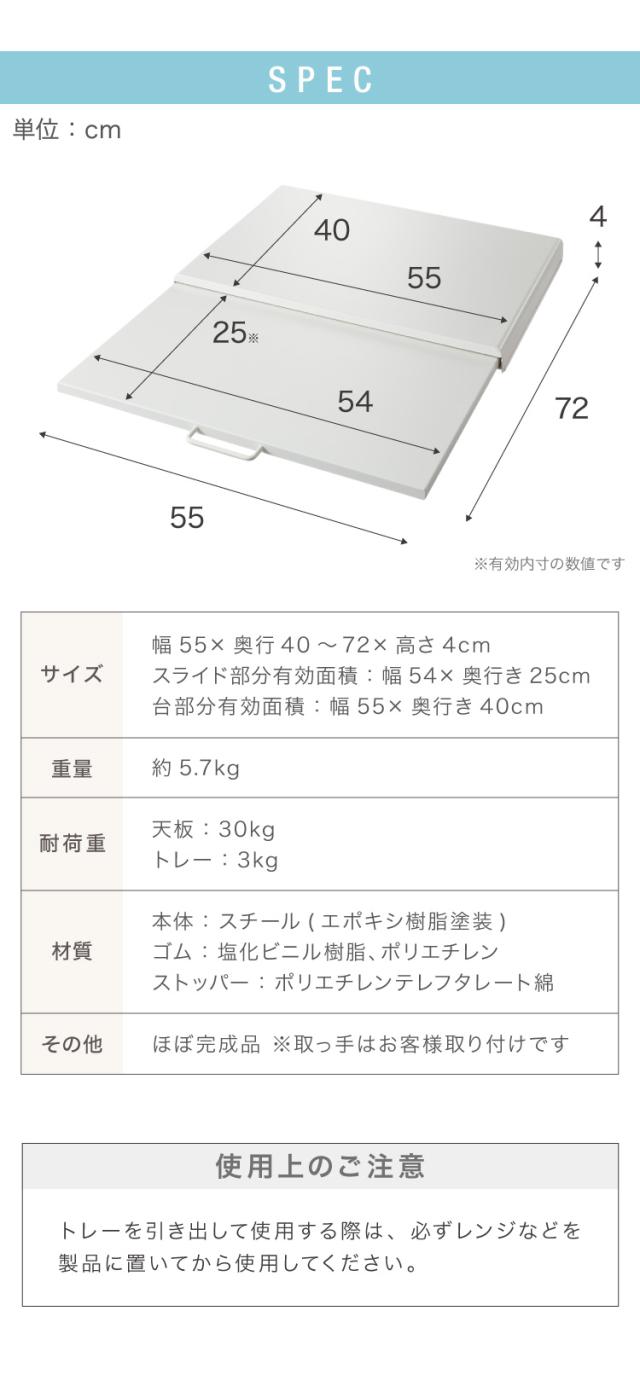※トレーを引き出して使用する際は、必ずレンジなどを製品に置いてから使用してください。