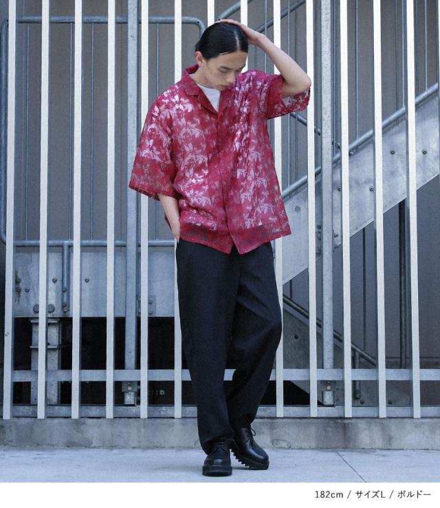 シャツ メンズ トップス 半袖 カジュアルシャツ 羽織 シアー 透け感 リーフ柄 ジャカード ジャガード オープンカラー ボックスシルエット レイヤード 重ね着 春 夏 【MEN】 【TP】 ボタンシャツ 前開きシャツ 襟付きシャツ 開襟シャツ 柄シャツ ショート丈 ミディ丈 ミドル丈 ボタニカル柄 総柄 シースルー おうちで洗える カジュアル シンプル モード アメカジ スポーティ ストリート 楽ちん Sサイズ Mサイズ Lサイズ LLサイズ XLサイズ 10代 20代 30代 40代 50代 60代 オフィス 通勤 通学 お買い物 お出掛け 旅行 リゾート レジャー アウトドア キャンプ プール 海 おしゃれ お洒落 トレンド 流行 大人男子 大人かっこいい お洒落かっこいい お洒落男子 パパ 父 父親 かっこいい osharewalker オシャレウォーカー おしゃれうぉーかー MDR エムディアール 大人カジュアル ベーシック ニュアンス ラフ オフィスカジュアル スタイリッシュ 上品 きれいめ レッド 赤 ボルドー ブラック 黒[ID]42tn0wv[MDRシアージャカードシャツ]