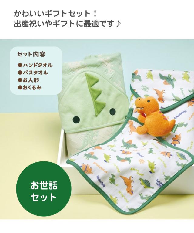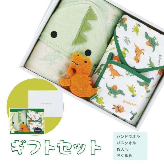 \今だけ10%OFF/ 出産祝い ギフト 4点セット ラッピング無料 メッセージカード無料 男の子 ハンドタオル バスタオル 綿100% ぬいぐるみ おくるみ ベビーギフト 誕生日 プレゼント 赤ちゃん 子供 新生児 かわいい ディノサウルス 恐竜 SET1100