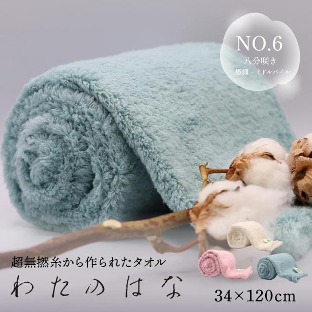 わたのはな No6 ミドルパイル 極細糸 髪の毛 速乾 吸水タオル バスタオル フェイスタオル ギフト ふわふわ 超無撚糸 綿100% 浅野撚糸 スーパーゼロ 平和 感謝 約束 白 アイボリー ピンク グリーン エアーかおる 送料無料