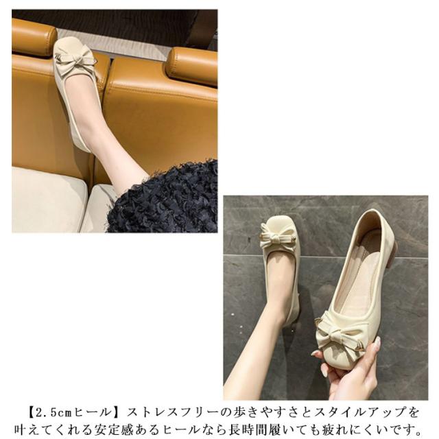 痛くない パンプス 柔らかい 春秋 靴 リボン オシャレ 幅広 ヒール2.5cm 歩きやすい レディース 履きやすい ローヒール ローファー 走れる 疲れない レディースパンプス フラットシューズ 通勤 デート 夏 優しい 女性 母
