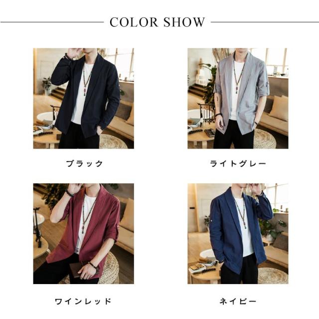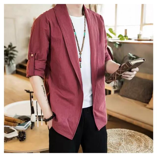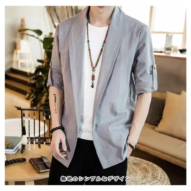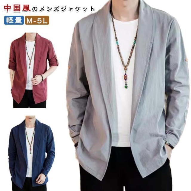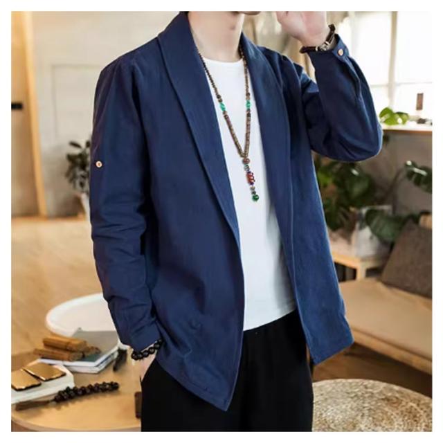 | 中国風のメンズジャケット 肌に優しく通気性のある生地 無地のシンプルなデザイン 春、夏、秋に着用できます | |