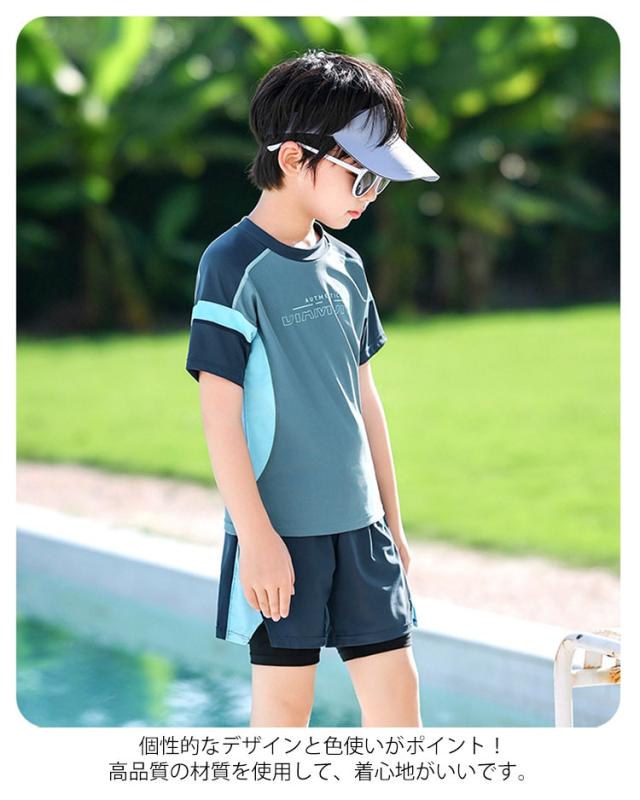 みずぎ UVカット キッズ スイムウェア 水着 水着 男の子 水着 半袖 上下セット ボーイズ ジュニア 水着 小学生 ジュニア 高校生 スクール 海 中学生 プール 温泉 スイムウェア カジュアル