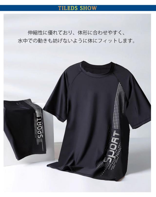 トレーニング水着 競泳水着 上下セット メンズ 潜水服 フィットネス水着 セパレート ウェットスーツ スイムウェア 吸汗速乾 半袖 スイミングパンツ 男子 海 練習用 大きいサイズ 水着 プール