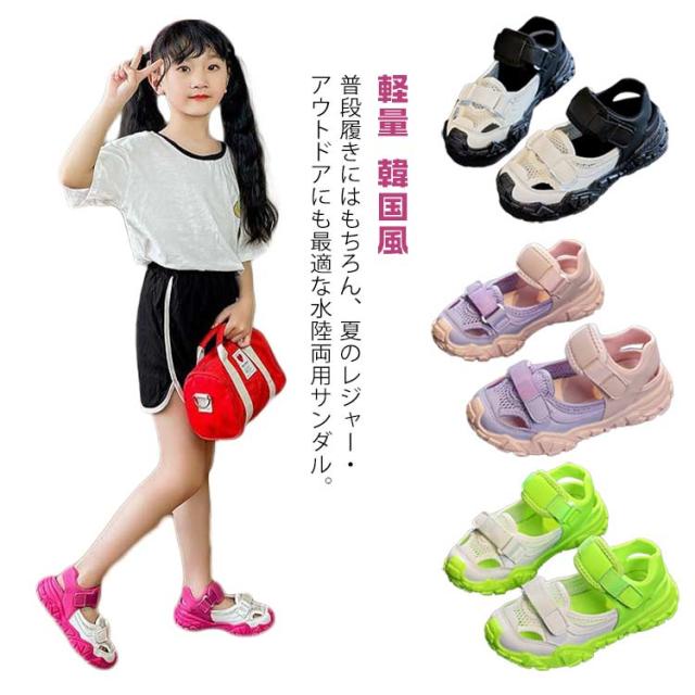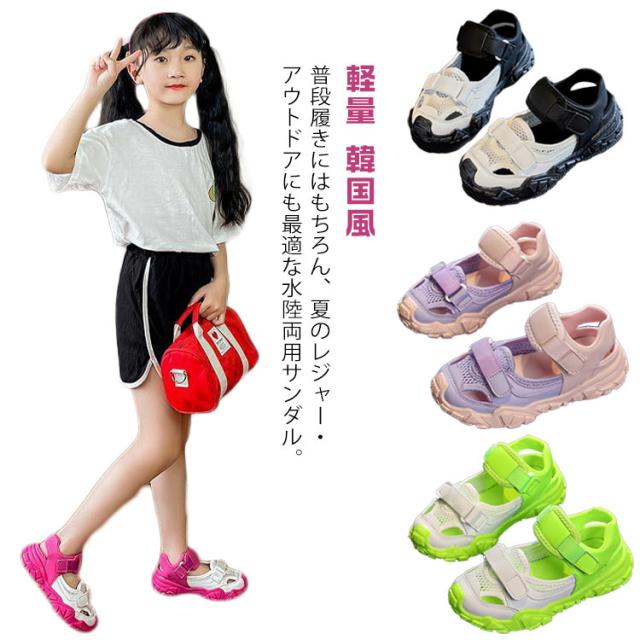 スポサン 韓国風 キッズ サンダル シューズ ガールズ 歩きやすい 女の子 スポーツサンダル 韓国風 ジュニア 軽量 サンダル サンダル 運動 女児 アウトドア 海 プール