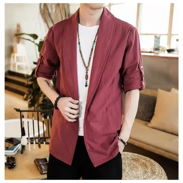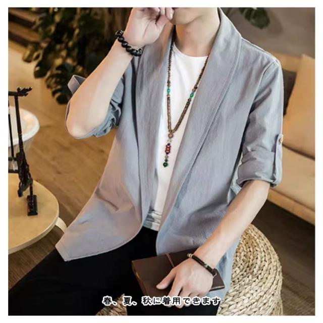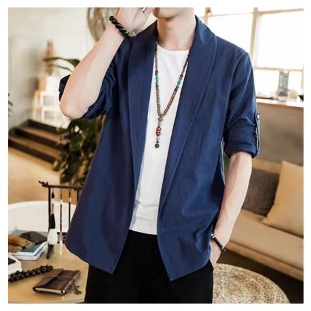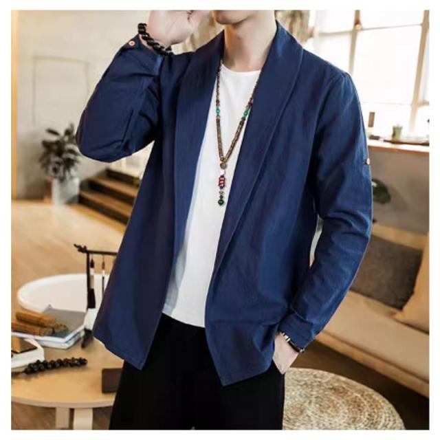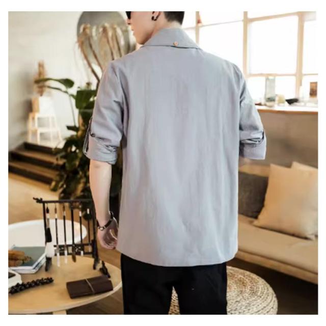 | 中国風のメンズジャケット 肌に優しく通気性のある生地 無地のシンプルなデザイン 春、夏、秋に着用できます | |