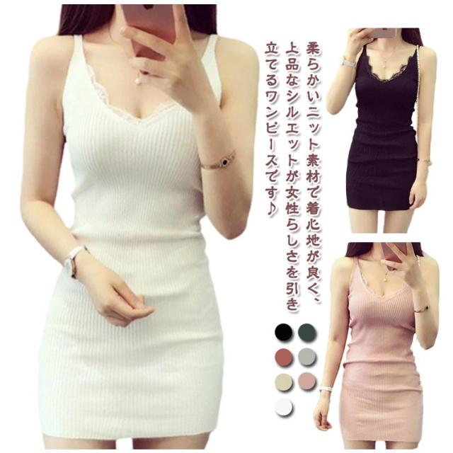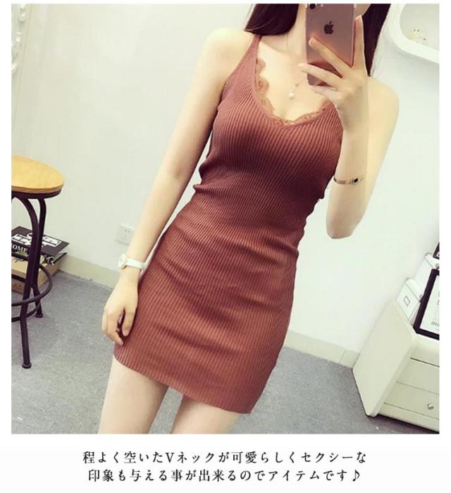 リブ ロング丈 タイト ロングキャミソール ミニワンピース 大人 ワンピース ミニ スリップ キャミソール Vネック ニットキャミソール 可愛い ニットワンピース ニットキャミソール ニット キャミソール ロング丈 タイト