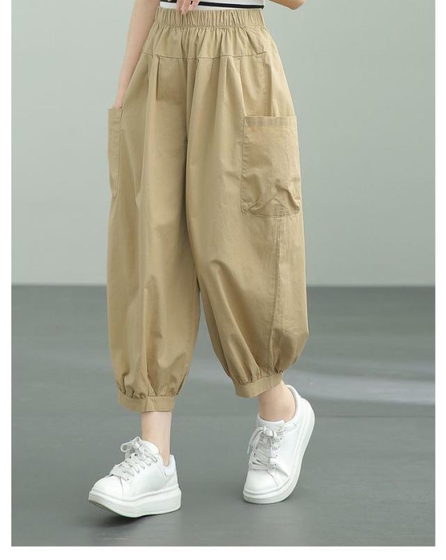 | シンプルで快適なレディースバルーンパンツ 携帯電話やその他の小物を収納できる両サイドのポケット 夏に涼しく通気性のあるゆったりとしたデザイン ウエストゴムで着脱便利 | |