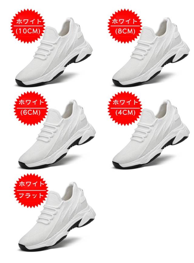 | 誰にも気づかれずに身長を高く見せてくれるシークレットスニーカーです。 一見見た目には分からない、傾斜した自然な靴底インソール+靴底のW効果で、最大身長+10cmアップ。 外からは通常のカジュアルシューズと変わらないのも魅力的!自然なデザインで外見からはシークレットシューズとは気づかれません。 ボリューム感のある見た目に反し、軽量設計により軽い履き心地。歩きやすさにこだわったアイテム。 通気性のあるメッシュ生地を使用し、蒸れにくい構造。1日中履いても快適な靴内をキープ! スポーツシーンだけでなく、通勤や通学、普段履きとしてもカジュアルなコーディネートをお楽しみいただけます。 | |