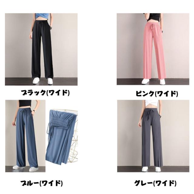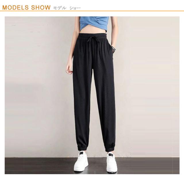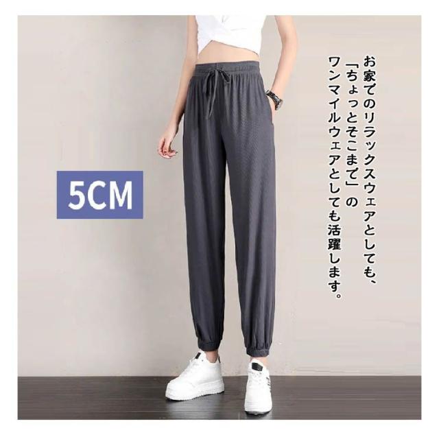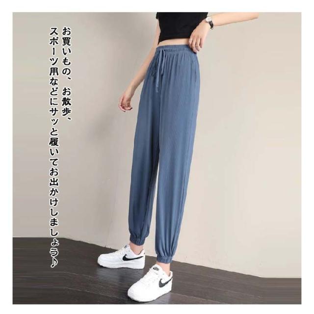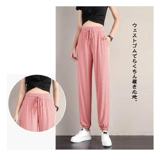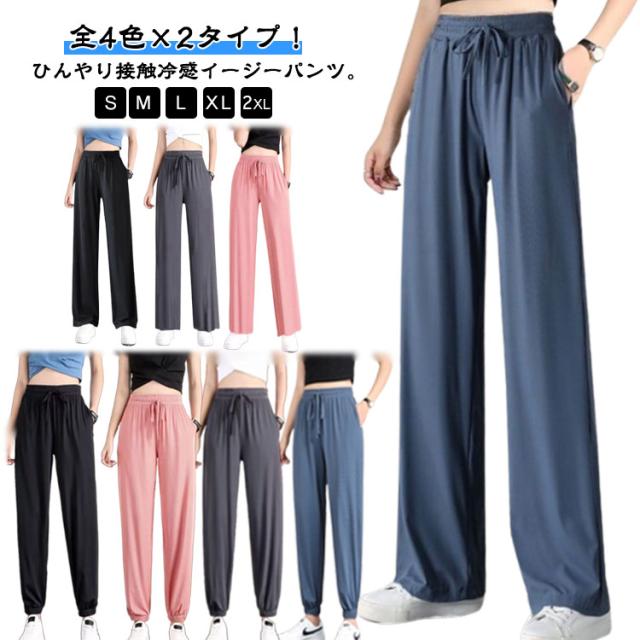 冷感 ワイドパンツ 薄手 レディース イージーパンツ ジョガーパンツ ヨガパンツ通気性 涼感 ひんやり ロングパンツ ジョガーパンツ 涼しい ゆったり ポケット付き 冷感パンツ 大きいサイズ ストレッチ 伸縮性 ウェストゴム 裾ゴム