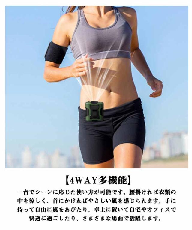 腰掛け扇風機 ハンズフリーファン 4WAY ハンディファン ベルトファン ファン 腰掛けファン クーラー ベルト LEDライト 携帯扇風機 100段階風量 落下防止 腰ベルト扇風機 首掛け 腰掛け 強力 冷却 扇風機 静音 小型 軽量 防水
