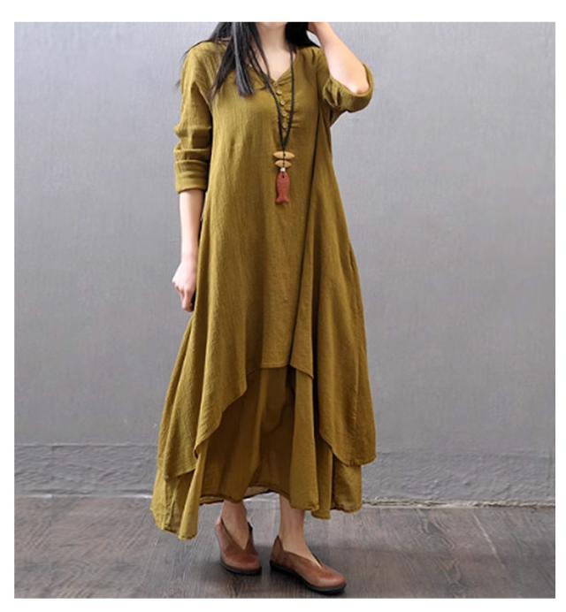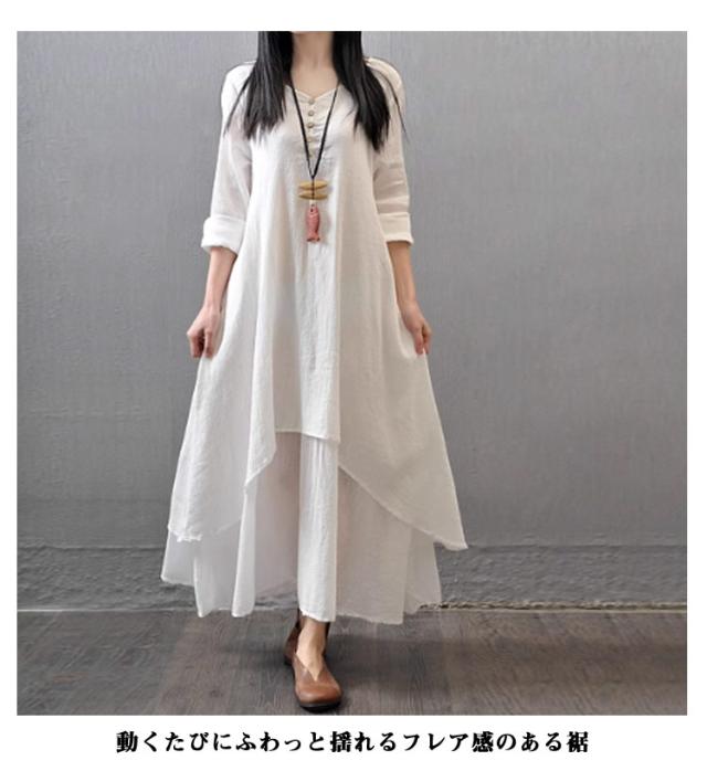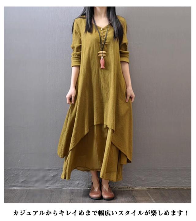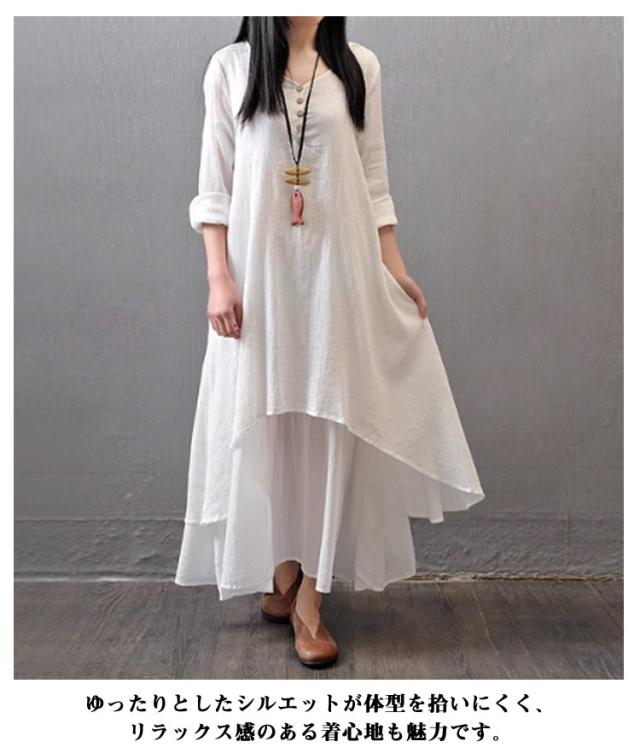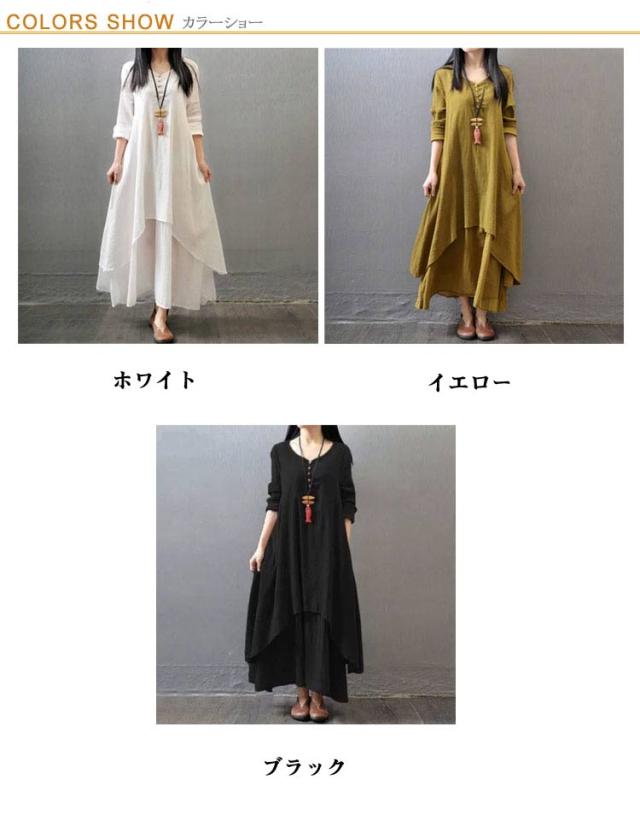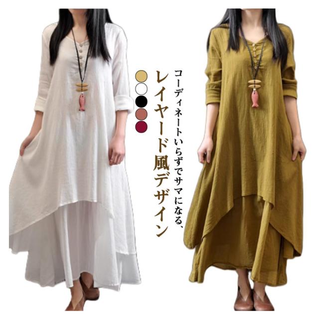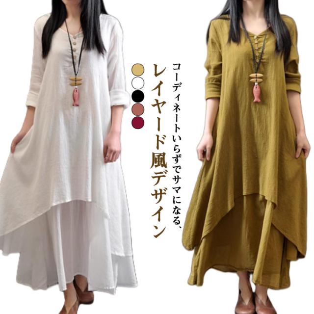 黒 ワンピース 半袖 ゆったり ロングワンピース 重ね着風 レイヤード風 きれいめ 綿麻調 体型カバー 30代 白 夏 着痩せ 半袖ワンピース aラインワンピ フレアワンピース レディース イエロー おしゃれ カジュアル 大人可愛い 半袖 40代 50代 レディースファッション