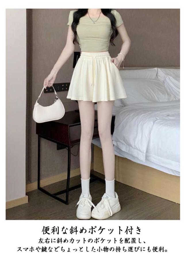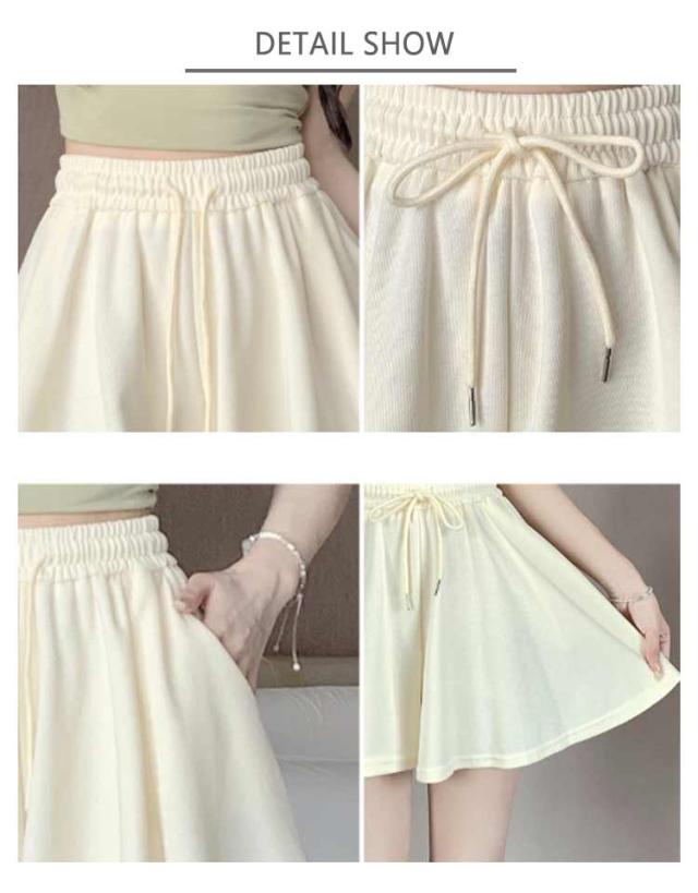 ハイウエスト ショートパンツ 脚長 ショートパンツ キュロット 夏用 フレアパンツ 通勤 カジュアル 体型カバー 美脚 レディース 大きいサイズ ゆったり ワイドパンツ Aライン S-4XLサイズ 薄手 オフィス ポケット付き