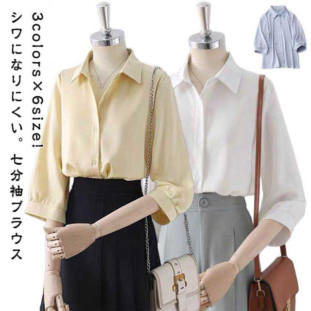 トップス レディース 襟付き 7分袖 七分袖 白ブラウス ブラウス オフィス シャツ 衿 大きいサイズ ゆったり フロントボタン 白シャツ 通勤 シワになりにくい 事務服 フェミニン カジュアル ブラウス きれいめ