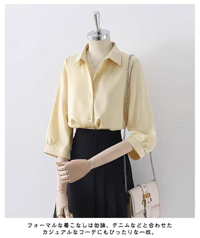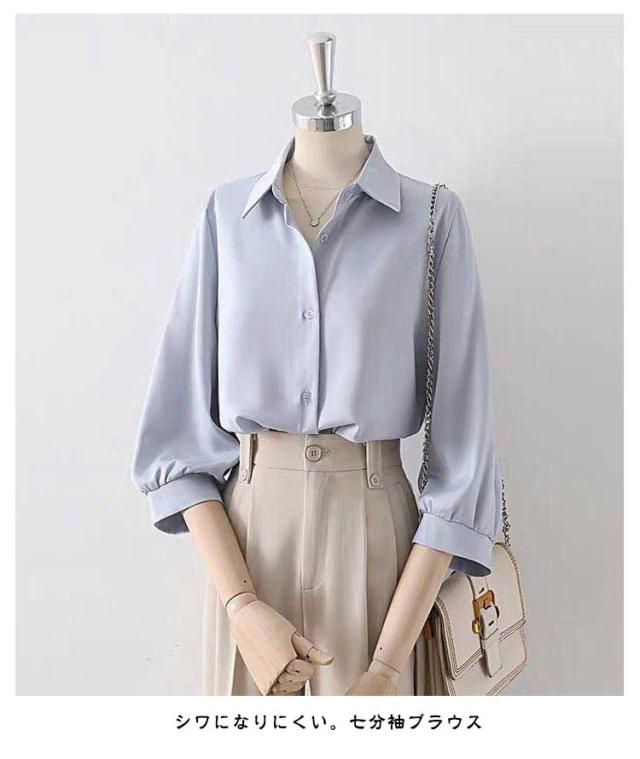 | シワになりにくい。七分袖ブラウス 前開きのデザインもポイントです♪ フォーマルな着こなしは勿論、デニムなどと合わせたカジュアルなコーデにもぴったりな一枚。 通勤、オフィス、入学式に七五三…単品としてもスーツインナーとしても華やかに決める! | |