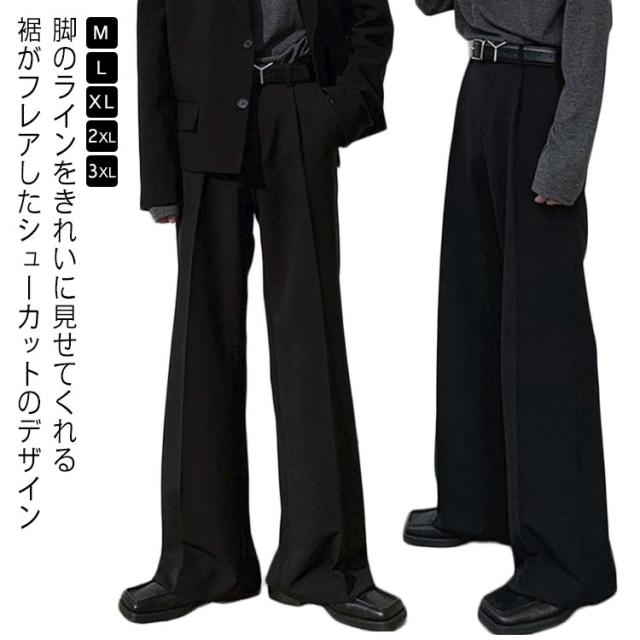 カジュアル メンズ 大きいサイズ フレアパンツ メンズ センタープレス スラックス メンズ ワイドパンツ フレアパンツ 黒 シューカット ゆったり シューカット パンツ メンズ チノパン 洗える ビジネス オシャレ ブラック ストリート 韓国 ビジカジ