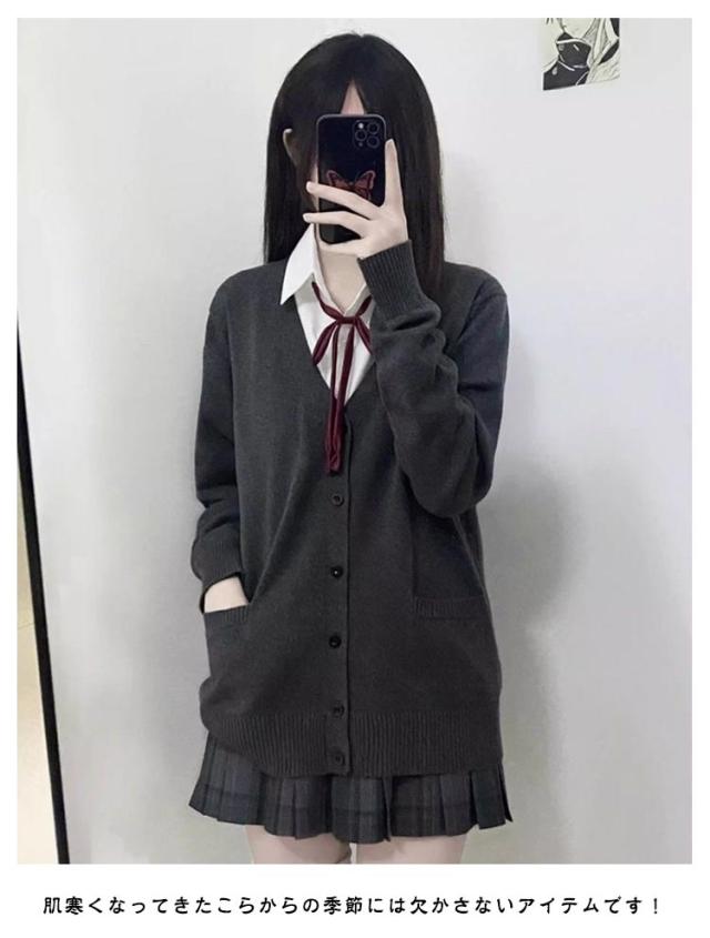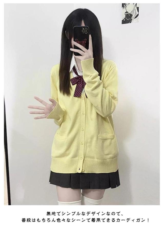 | 男女兼用 通学でも私服でも使えるニットカーディガン。 シンプルなデザインで制服にも合わせやすいスクールカーディガン。 首元を綺麗に見せるVゾーンと、程よくゆとりを持たせたシルエットが清楚さを演出! 肌寒くなってきたこらからの季節には欠かさないアイテムです! 無地でシンプルなデザインなので、普段はもちろん色々なシーンで着用できるカーディガン! | |