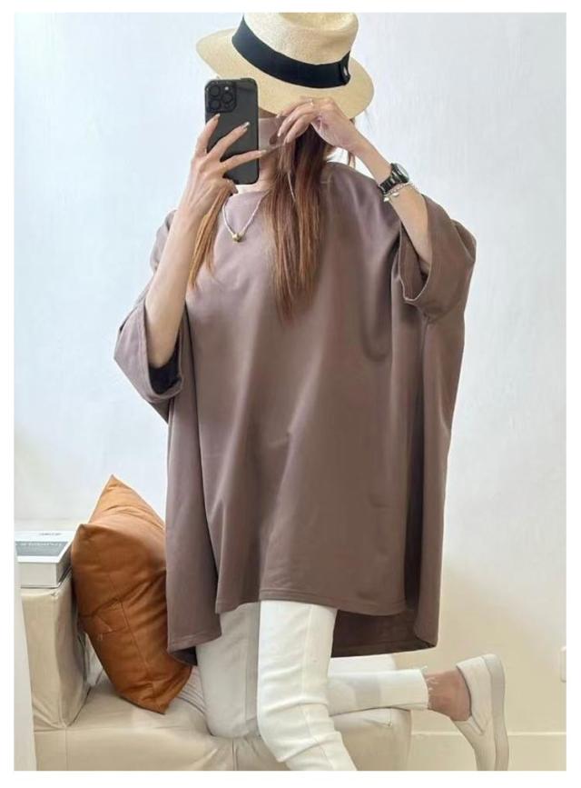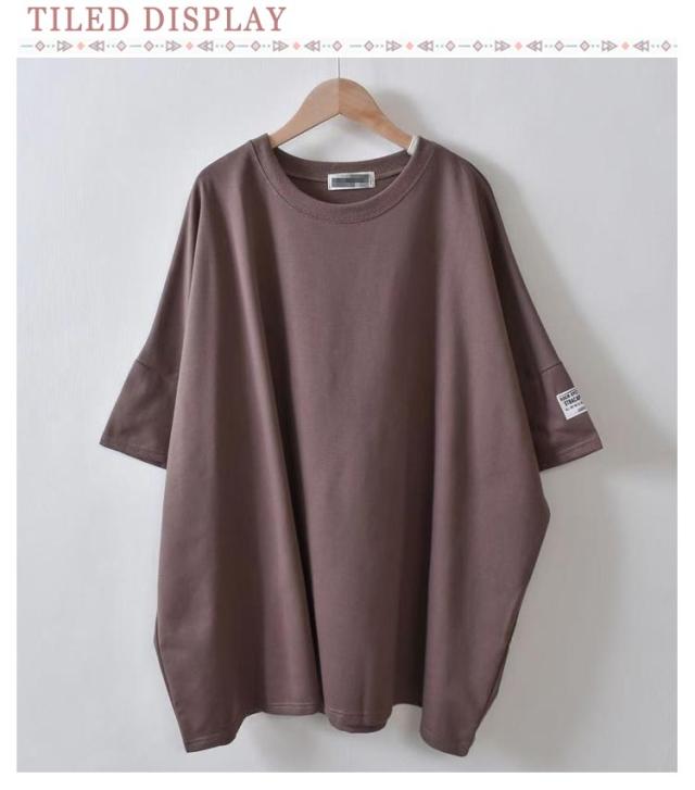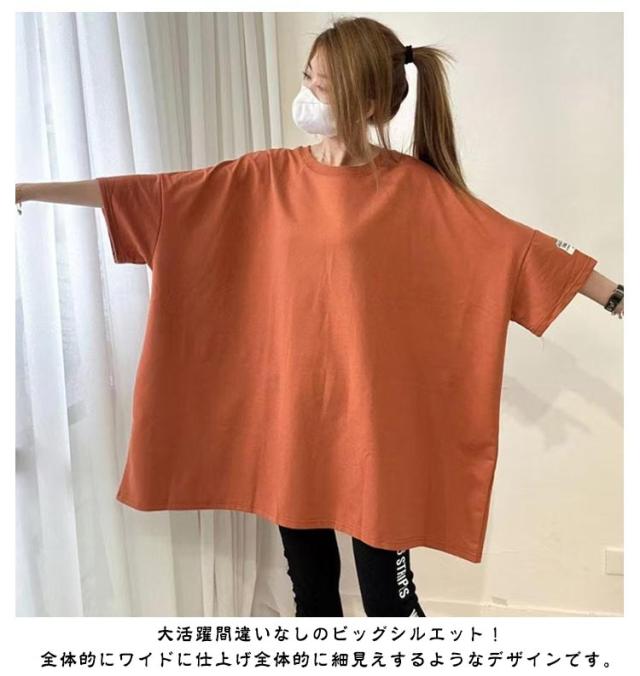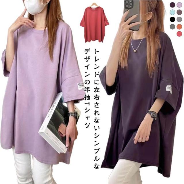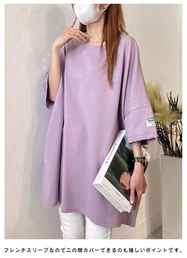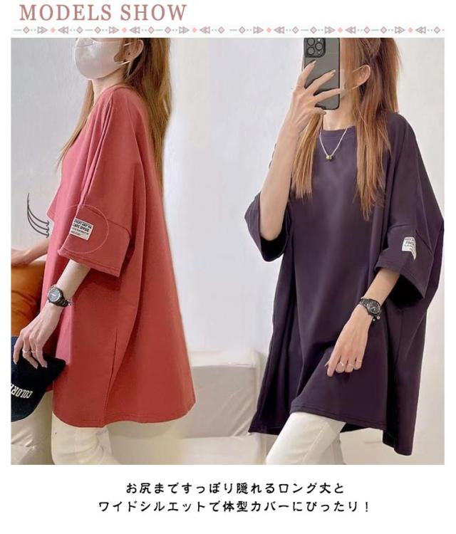 お尻隠し ビッグシルエット 大人かわいい レディース トップス ティシャツ チュニック お尻隠し 半袖ロングTシャツ 5分袖 大人可愛い ゆったり ゆる 半袖ロングTシャツ ワイド 体型カバー ドロップショルダー ロング丈 おしゃれ マタニティ