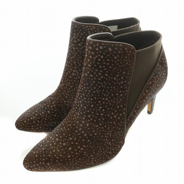 【中古】未使用品 クラークス ライナバイオレット サイドゴアブーツ ショートブーツ ハラコレザー ヒール 23.5cm 茶