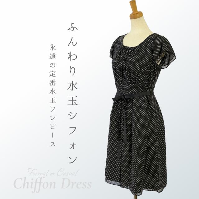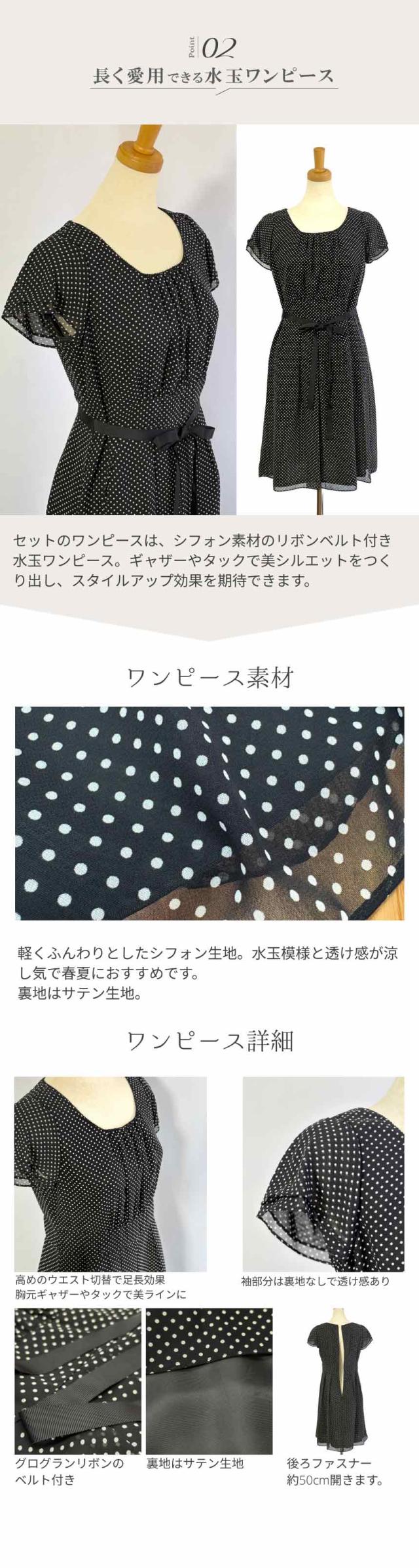 セットのワンピースはふんわりとしたシフォン生地の水玉柄。