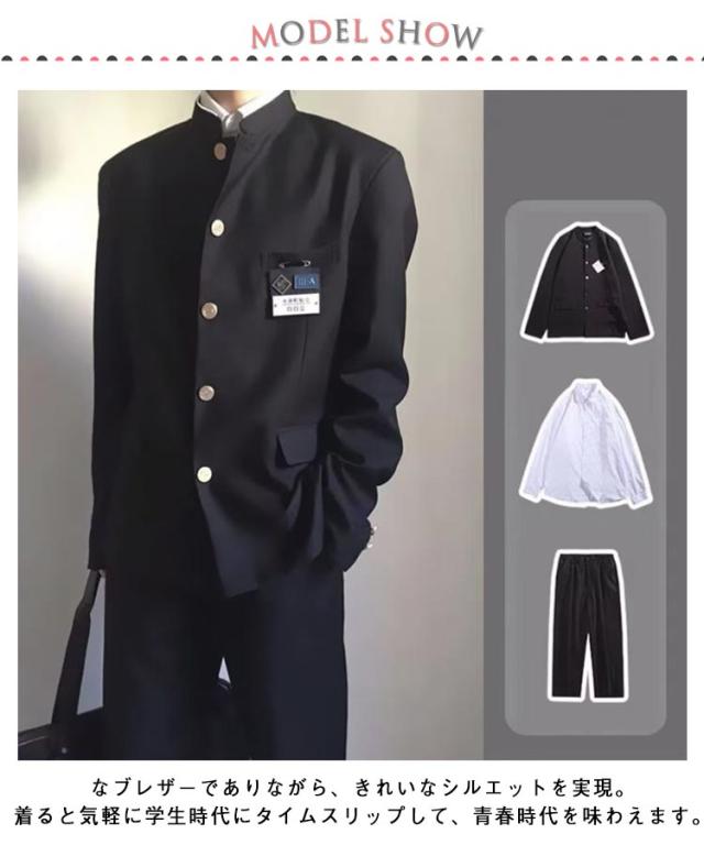 高校制服 学生服 コスプレ 上下セット 3点セット cosplay 仮装 メンズ コスチューム 卒業式 入学式スーツ 学生制服コスプレ 男子高校生 中学生 コスプレ衣装 文化祭 学園祭 黒 制服 詰襟 ラウンド襟 男子 学ラン 高校生 スラックス 入学式 卒業式 コスプレ衣装