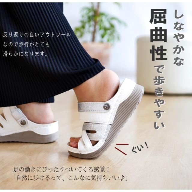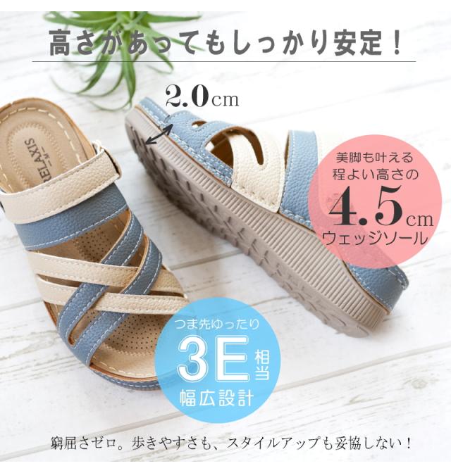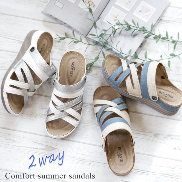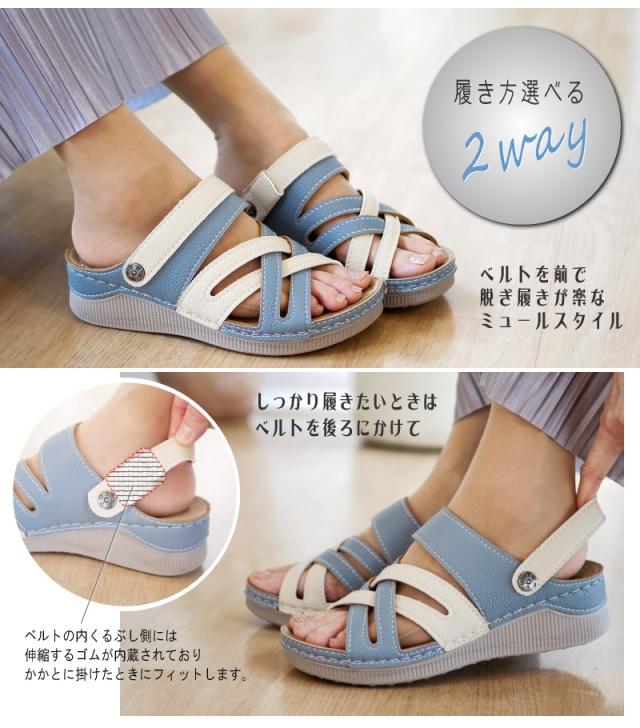 サンダル レディース 2way つっかけ バックベルト 軽い コンフォート ウエッジソール オープントゥ カラーコンビ シボ感 レザー調 仕事 ワンマイル 旅行 屈曲 3e