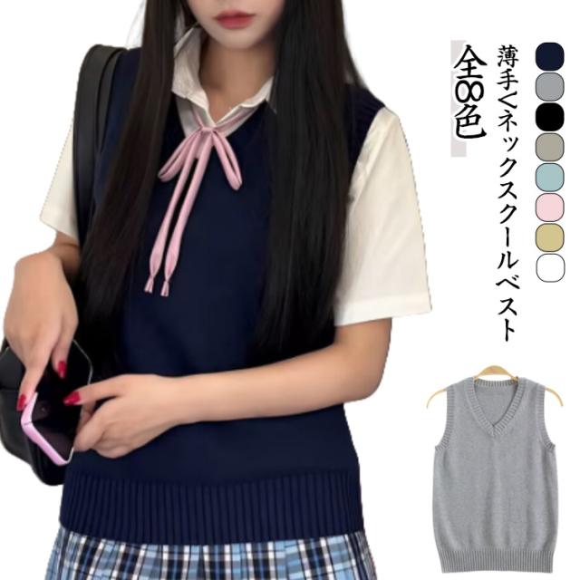 全8色 夏用 ニットベスト JK 女子高生 女子 Vネック ベスト セーター ノースリーブ 薄手 無地 ニット 涼しい 制服ベスト 制服 シンプル 通学 中学 学生 春 夏 秋 無地 レディース スクール かわいい チョッキ スクールベスト ベージュ グレー 紺