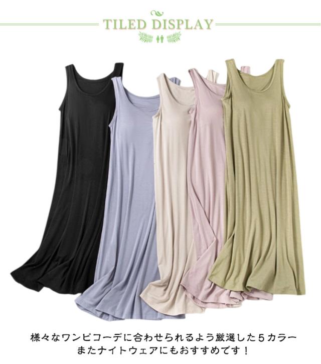 | カップ付きロングタンクトップ 軽くて薄い生地のインナーワンピース 胸元が二重構造になっているブラカップ付き カップは別布に丁寧に縫い付けられており、アンダーにはソフトサークルゴム クッションパッドには程よい厚みがあり、バストをキレイに見せてくれます タンクトップタイプなので胸元・背中も程よくカバー 長さは膝にかかる程度(個人差有)でワンピやスカートインナーに最適です またモダール生地は吸方湿性に優れておりずっと快適な着心地 足に纏わりつくこともありません 様々なワンピコーデに合わせられるよう厳選した5カラー またナイトウェアにもおすすめです! | |