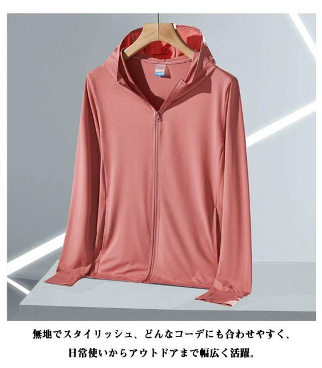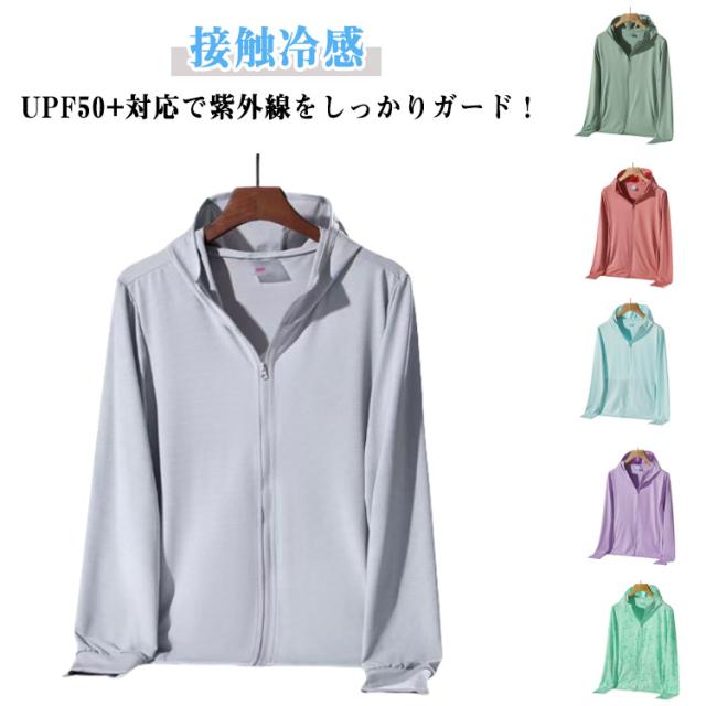 UVカットパーカー 接触冷感 レディース アウター 夏用 アウター 日焼け防止 紫外線対策 UPF50+ フード付き 薄手 軽量 夏服 長袖パーカー 羽織り 紫外線カット 通気性 旅行用 自転車 登山 アウトドア 無地 おしゃれ 女性用 涼感 袖穴付き