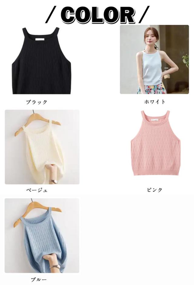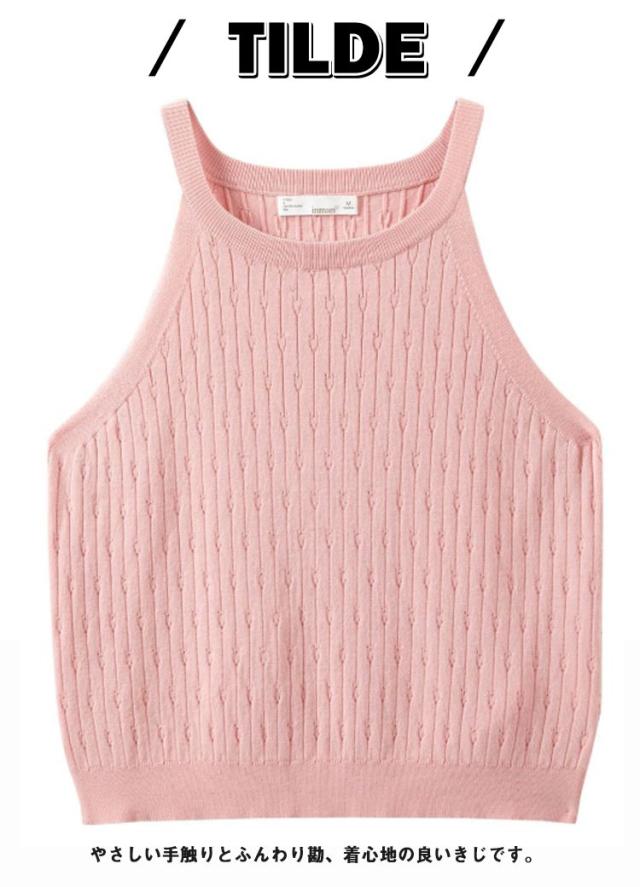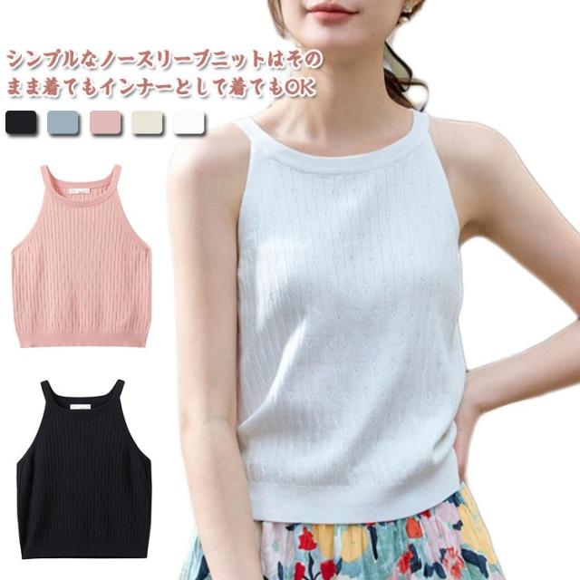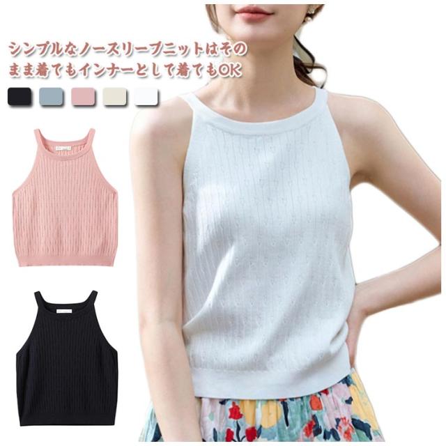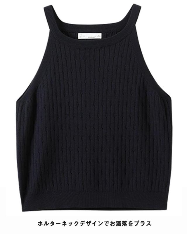ホルターネック ノースリーブ ニット トップス レディース 春 夏 サマーニット ノースリーブ 肩出し トップス ブラック セクシー 海 旅行 フェミニン 袖なし 上品 カジュアル