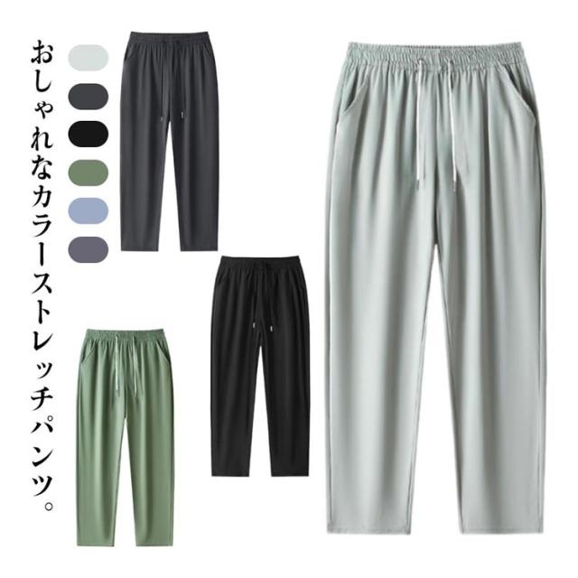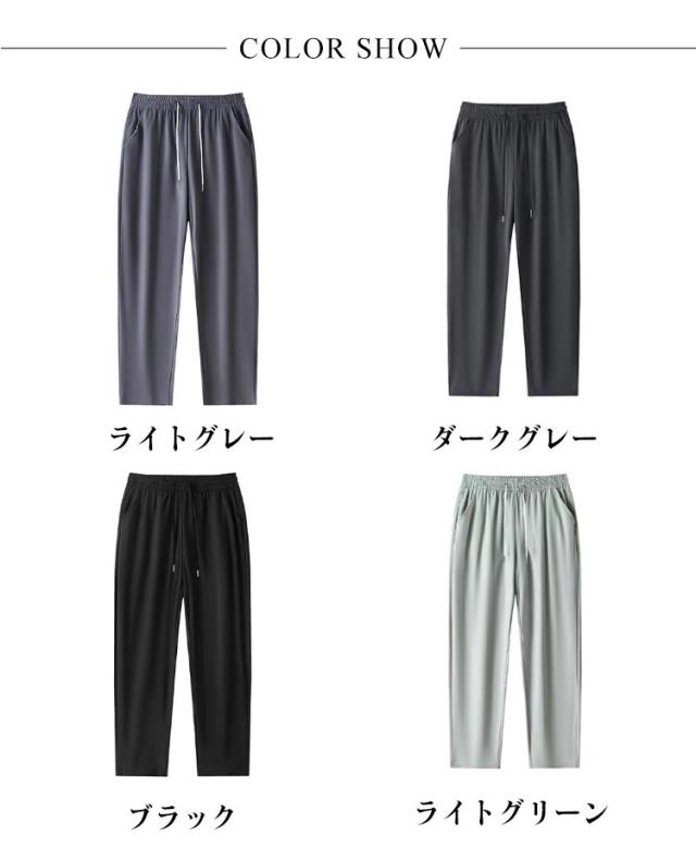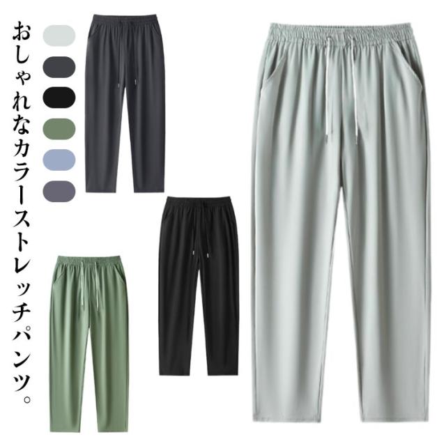 | 高弾力性・ひんやり冷感 おしゃれなカラーストレッチパンツ。 軽くて薄い、ひんやり接触冷感素材、汗を吸っても素早く乾く、通気性に優れてムレ感を軽減、いつもサラサラ快適な着用感。 伸びる伸縮自在のストレッチ素材を採用!ゴルフなどスポーツシーンにもストレスなくご使用いただけます。 裾に向かって細くなるきれいなテーパードシルエット、スタイリッシュに履きこなせるアイスシルクパンツ。 ジュアルな見た目ながらも、無駄な装飾を施さないシンプルなデザインでカジュアルからビジネスまで様々なコーディネートにマッチします。 | |